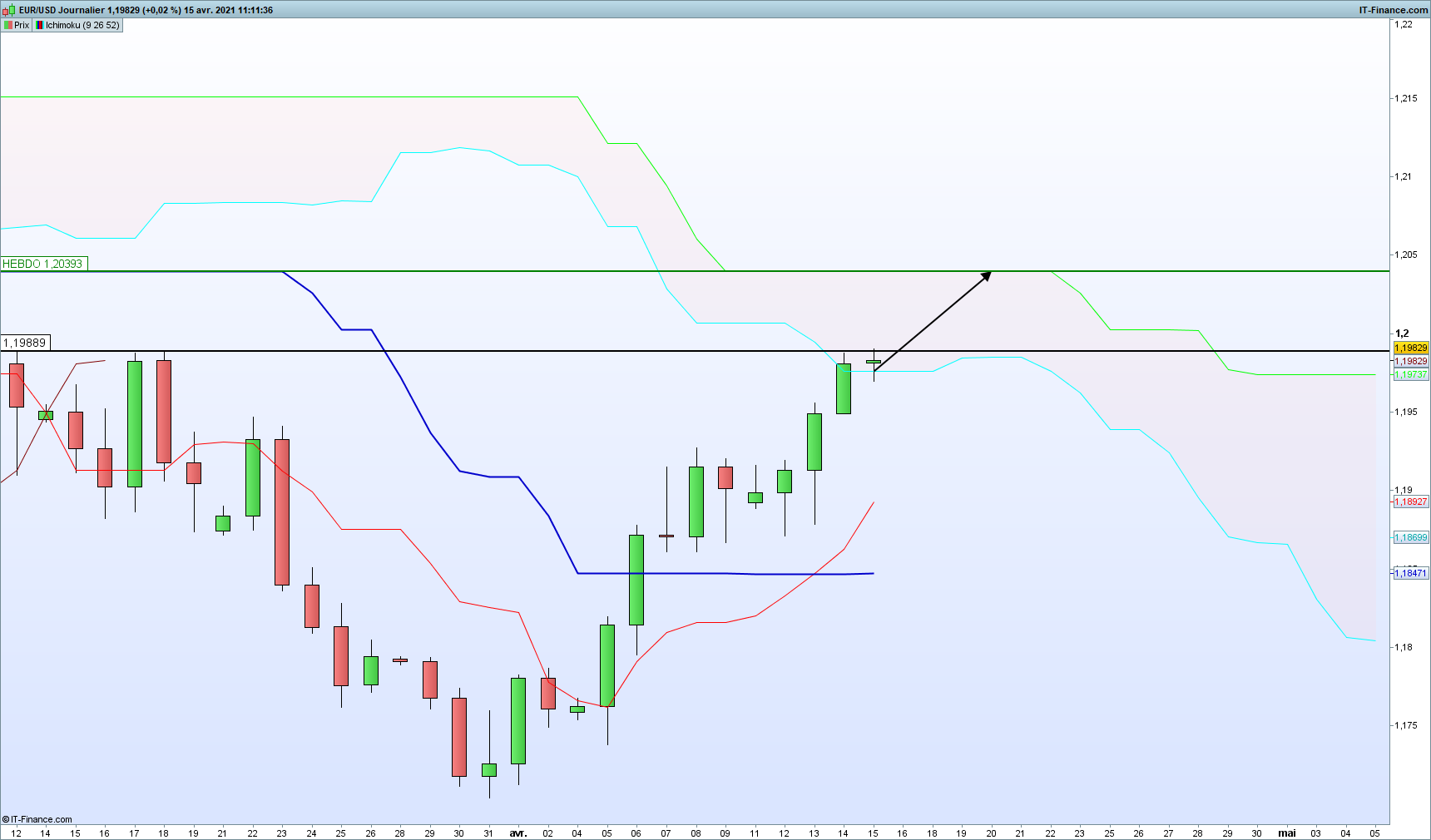 cela dit 1.20 étant un chiffre rond très travaillé , une mèche au delà de la kijun hebdo de 20 pips pour toucher les 1.20 reste probable.