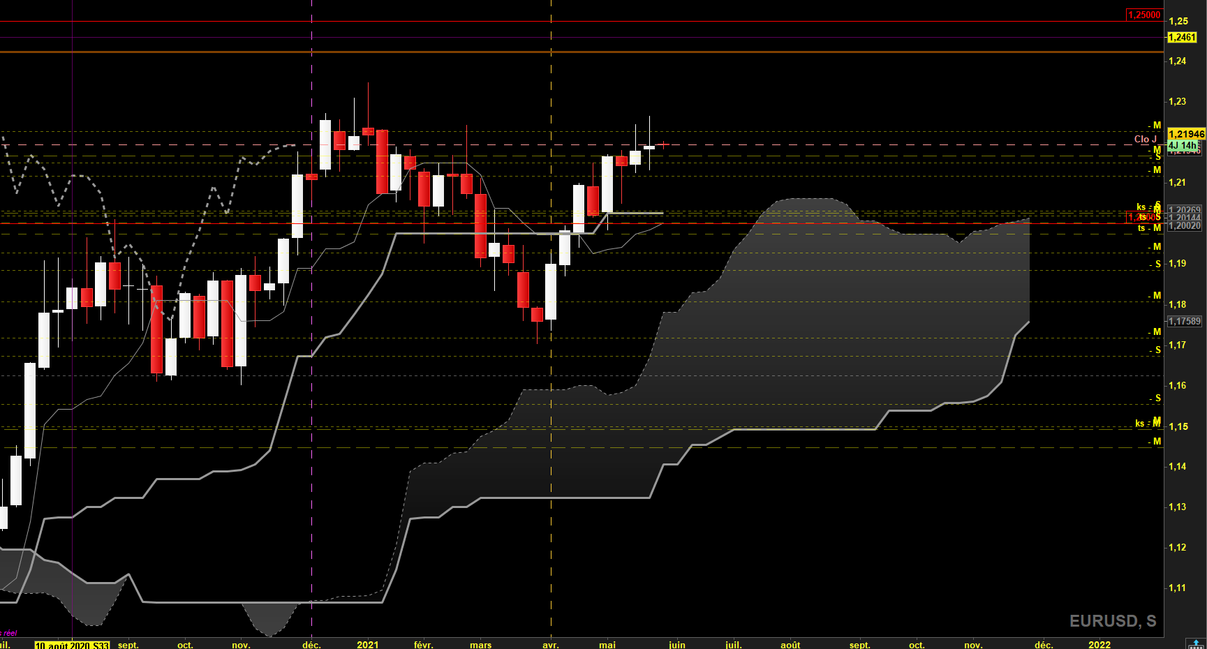 en mensuel les prix semblent se diriger vers la haut du range à 1.24 (mais peu d'importance pour une analyse intraday)