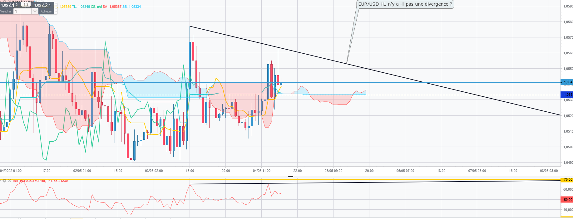 bonjour abfx ça fait un moment que je me morfondais dans mon coin et me revoilà en fait j'ai eu plein de soucis je t'envoie mon graphique du jour divergence ? en H1 bonjour à tous :)