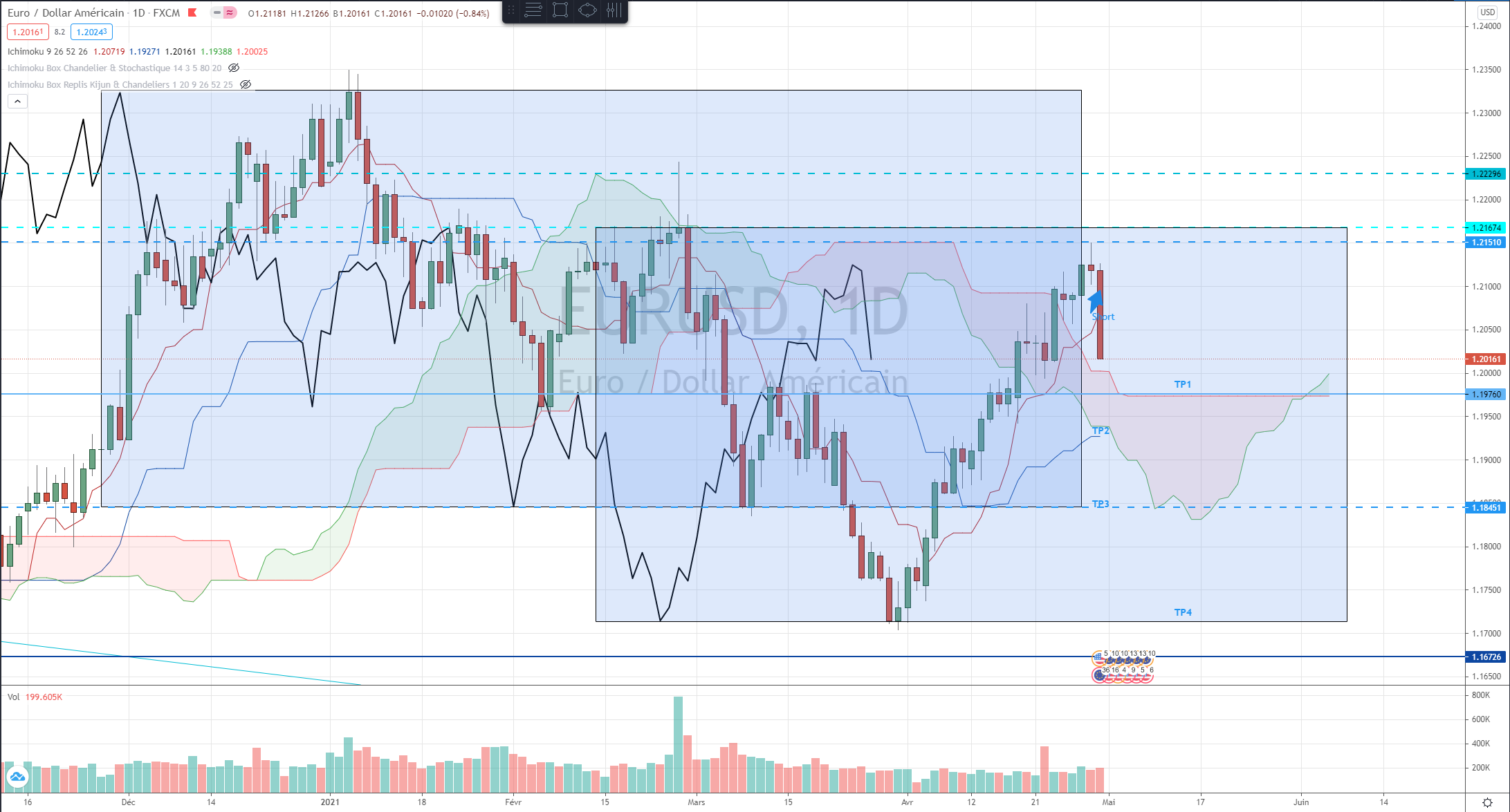 Toutefois tu as parfaitement identifié un niveau de résistance forte (le niveau 1.20 qui est un chiffre rond très important) où il faudra surveiller la réaction des prix.