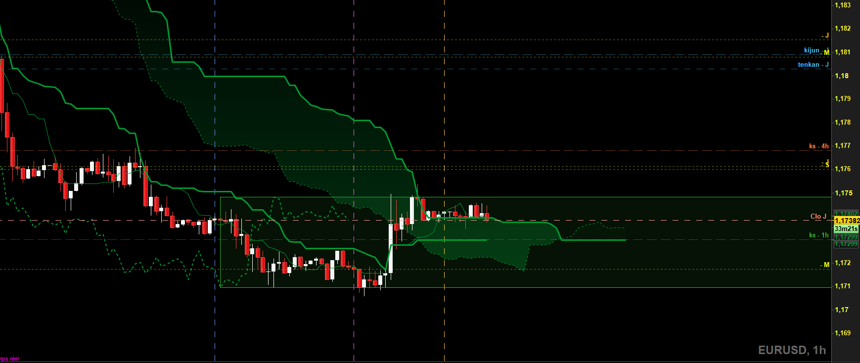 Bonour Beni, et tu as 100% raison. le bas du range daily est travaillé et nous avons pu observer cet avalement haussier hier. La kijun daily est à 1,18 et la kijun H4 à 1,1768 (mais pas plate à ce niveau).