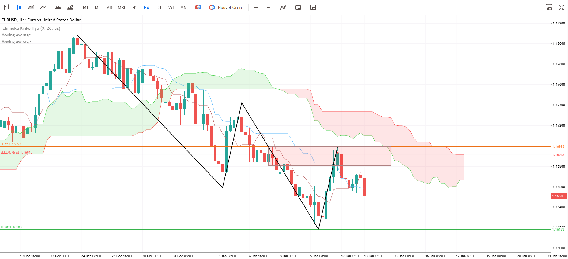 Comme d'habitude, dernier mouvement haussier avant cassure = Zone Pullback. (quel que soit les positionnement Kijun/Tenkan)