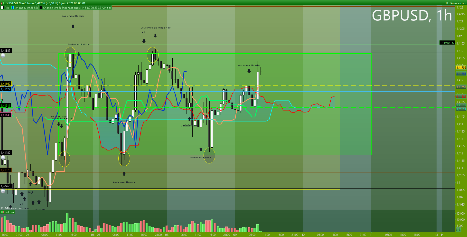 Bonjour matheo. En ouvrant les écrans ce matin, je vois que les prix sont passé au-dessus de la kijun H4, mais chikou sous les prix.
