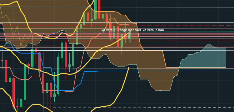 En mensuel il y a un joli range où les prix ont tapé la borne haute et semble se diriger vers la ZE=> vision baissière