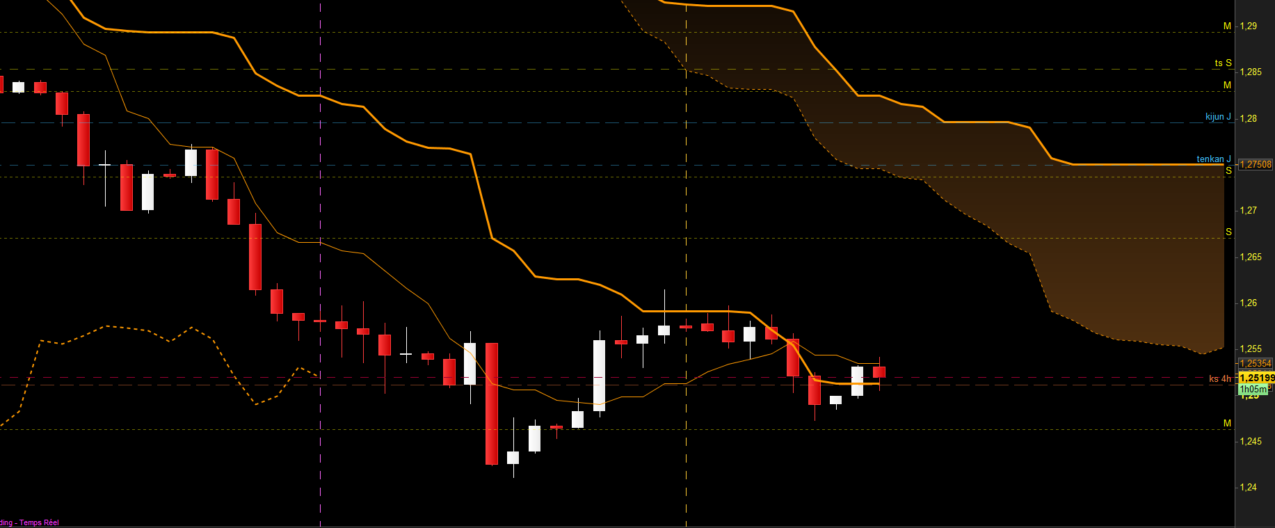 Le plan est simple: si le range H4 cède, alors on pourra chercher des ventes en swing ou en intraday pour aller chercher le plat SSB future mensuel puis la kijun mensuelle en TP final "gourmand"