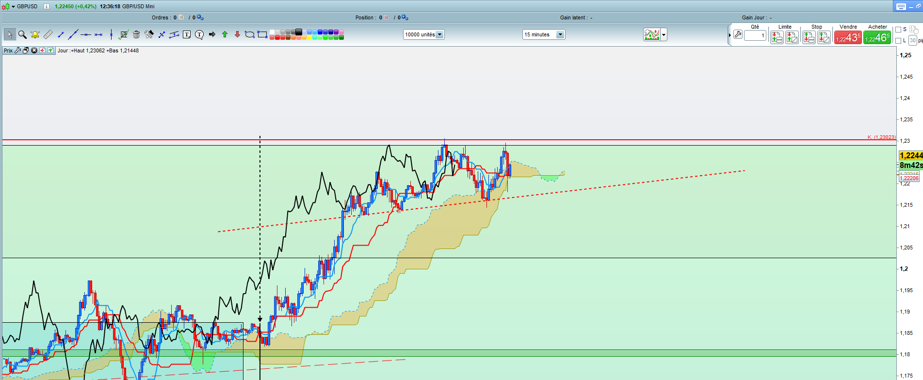 Un objectif potentiel pourrait être la kijun D1 qui correspond au report du range soir le report du double Bottom.