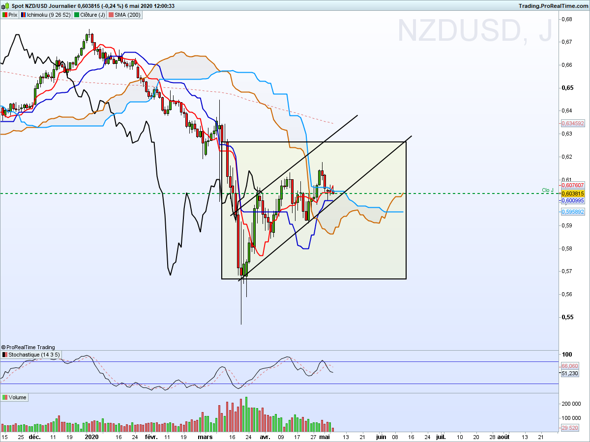 Partis du bas ils ont donc théoriquement vocation à aller en haut. Ils se replient sur la borne basse du canal qui pourrait les conduire du bas vers le haut et sur la kijun sen le tout au dessus de la zone d'équilibre