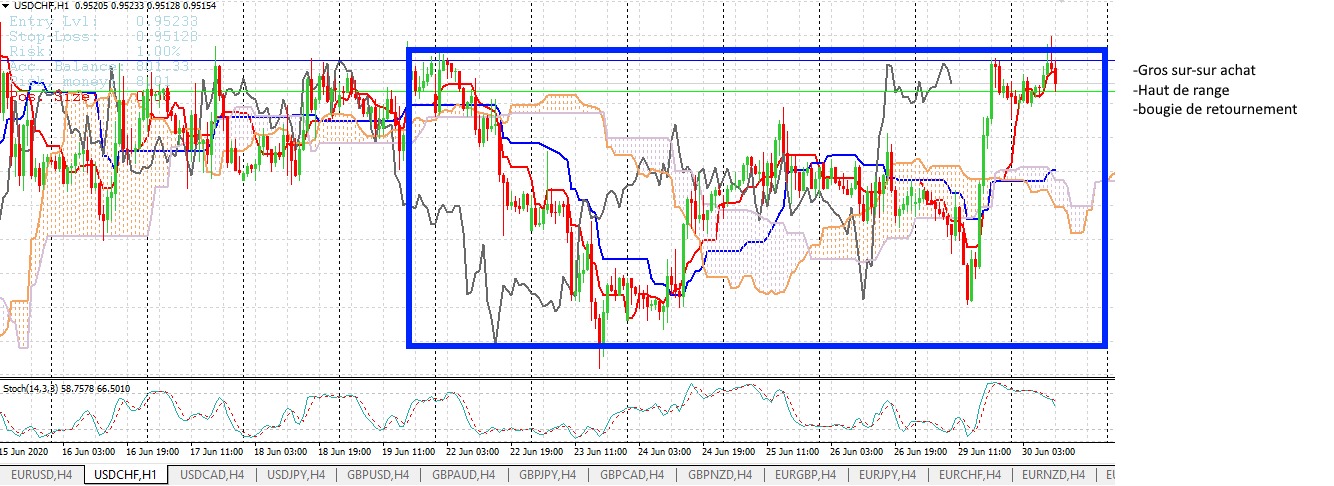 En H1 : Haut de range + gros sur achat + bougie de retournement :