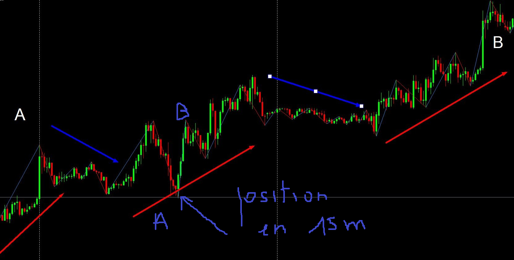 Graph N 2 : je note 15mm ma prise de position en bas repère A pour allez en B , donc en achat ????????