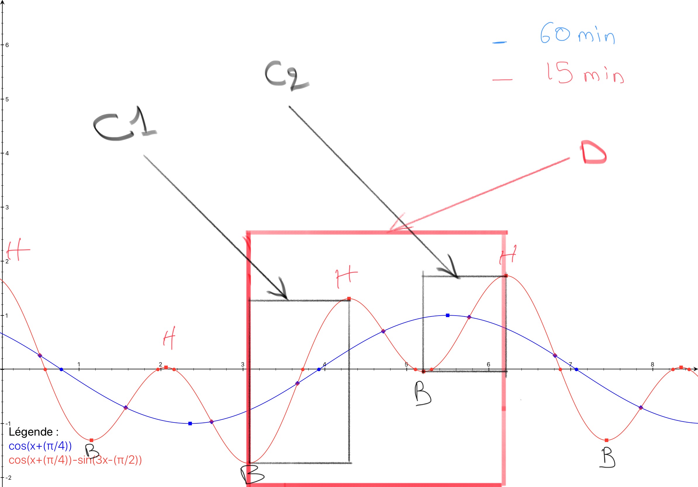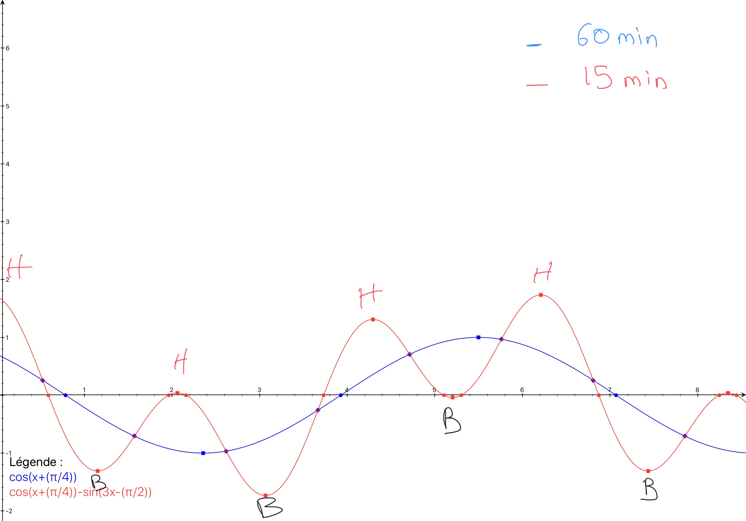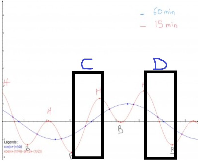 Dans les dessins de tes 2 courbes, 15 mn et 60 mn.
