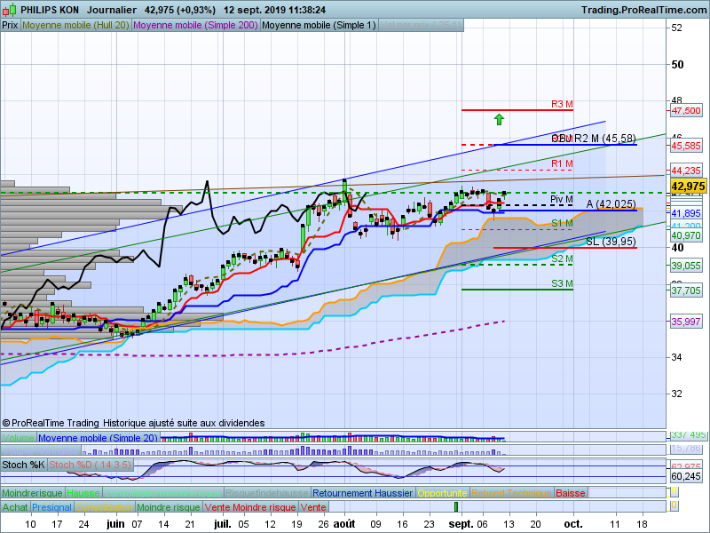En position hier sur Philips Kon dans le sens de la tendance en daily sur retour des cours sur un plat Kinjun.