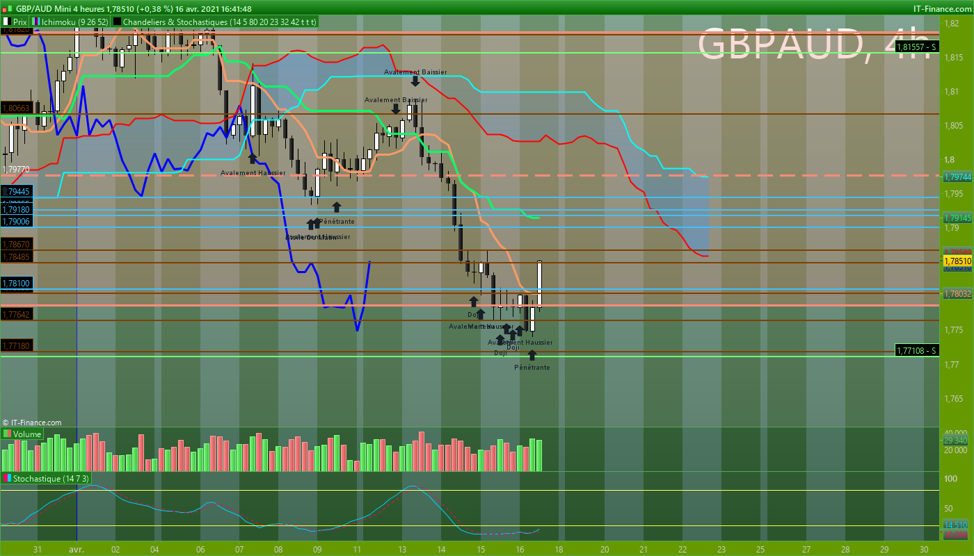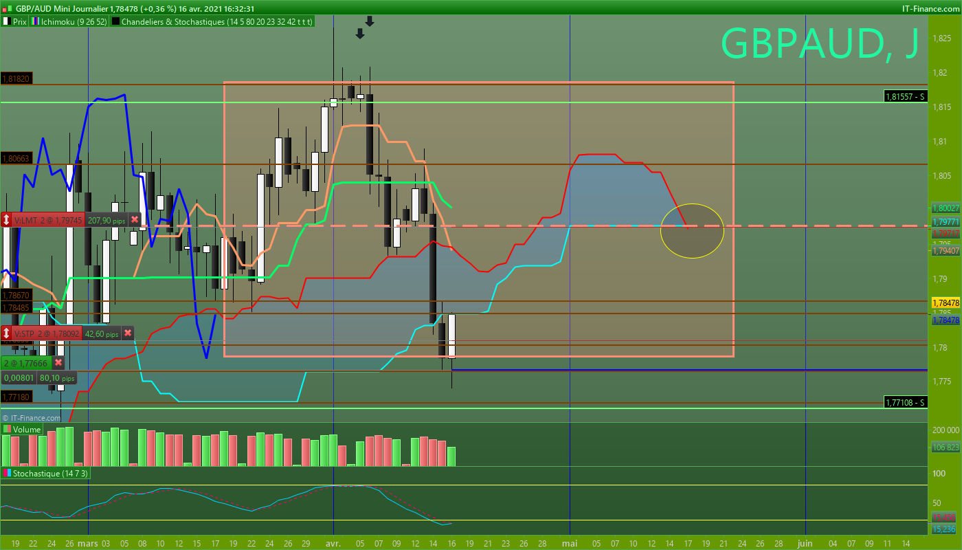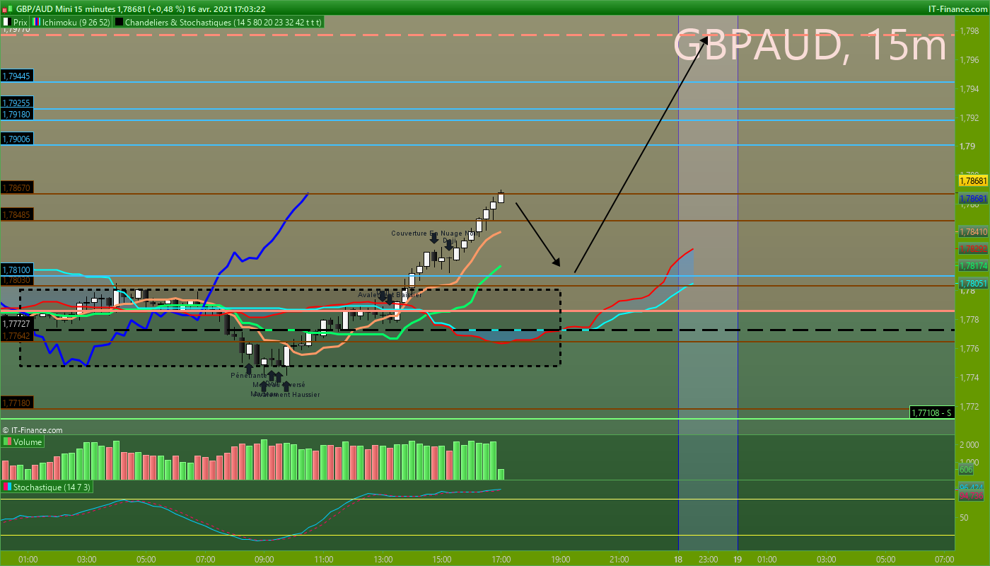 entré à 1.77666 suite à range détecté par la box en M15 après la grande bougie blanche, vu ce que j'ai vu en Q et H4 j'ai anticipé le range en Q et le retour des prix sous la kijun H4
