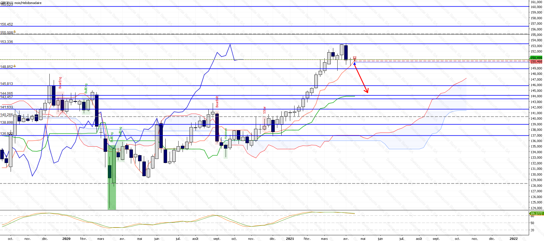 objectif 1 sous la SSB Q objectif 2 sous l'extension kijun Q (2 lignes marrons successives)