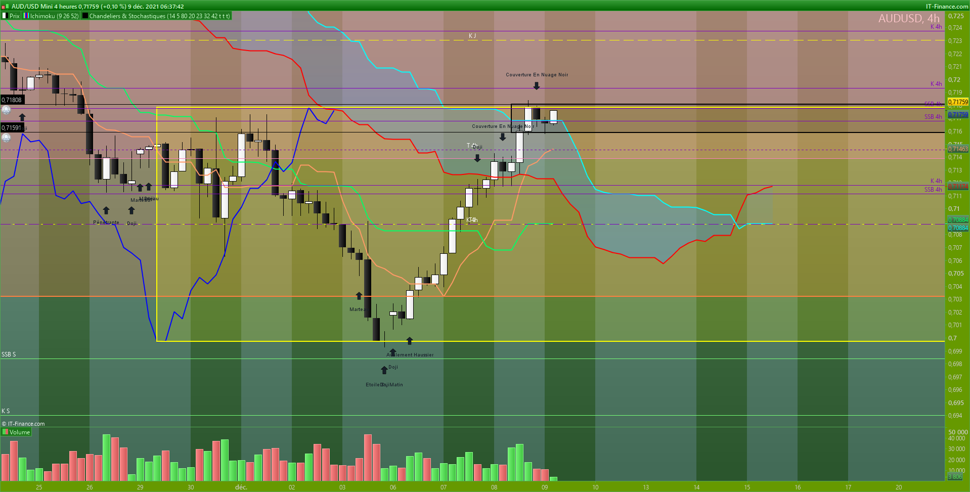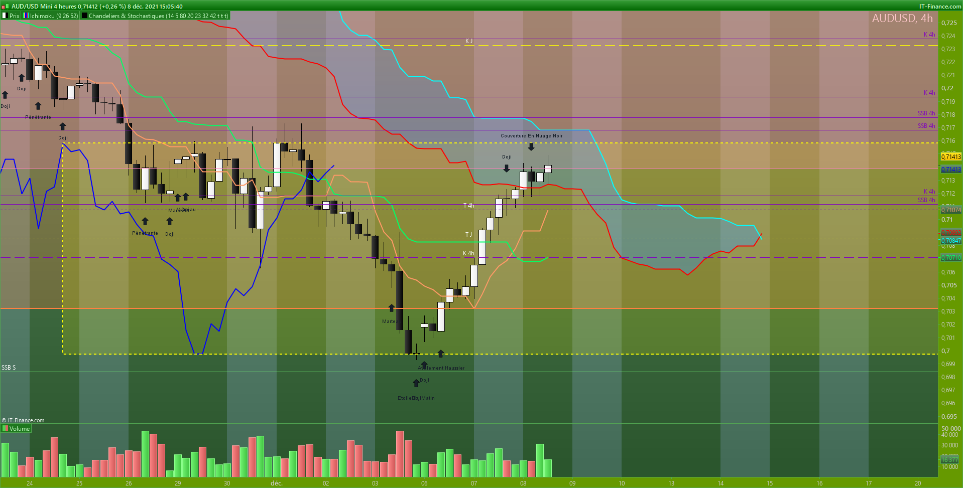 pour l'AUDUSD j'attends la formation d'un probable range H4