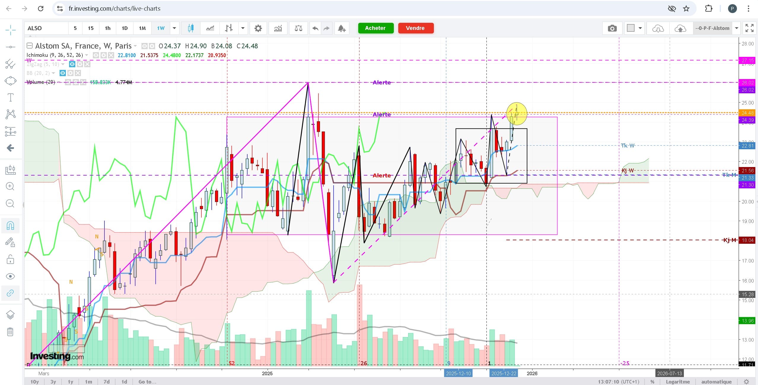 abfx a écrit:Bonjour, une alarme sonne, je regarde et c'est Alstom qui vient de toucher la kijun mensuelle, soit le TP1 du plan posté en vidéo le 11 avril dernier
