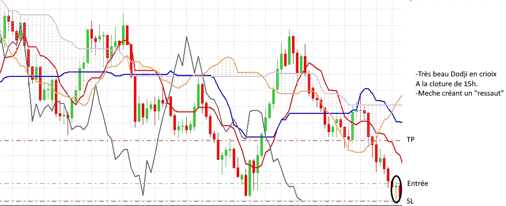 Apres coup, en H1, la tendance était très baissière et régulière...il fallait etre fou pour rentrer à l'achat...et je l'ai fait...