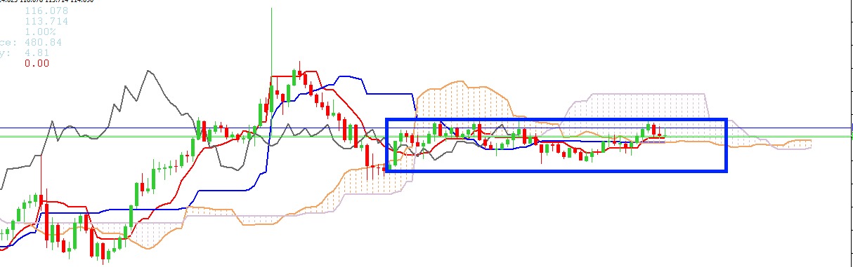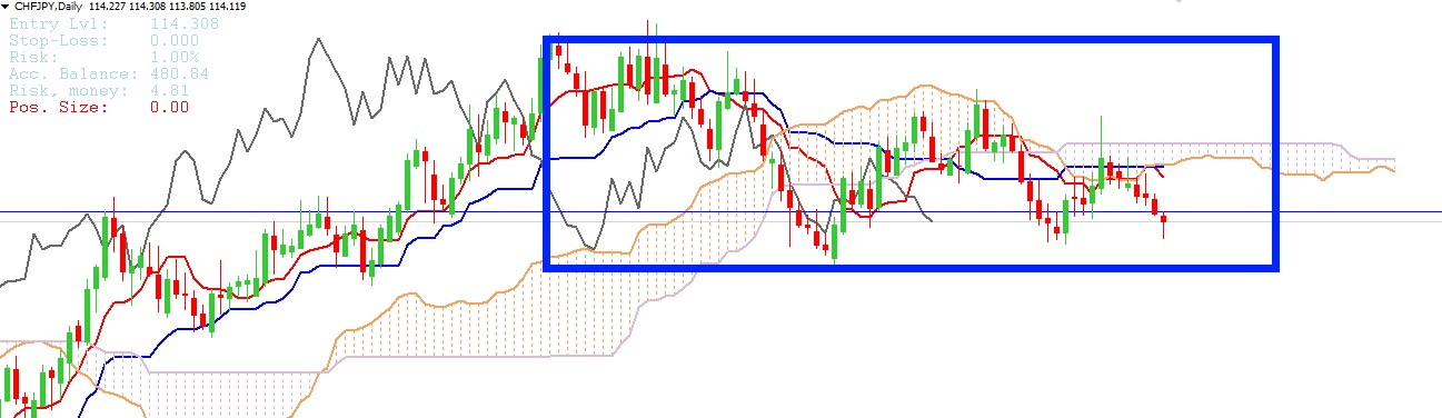 C'est le journalier qui m'ennuie. On a un plat de Kijun assez long, précédé d'un autre plat de Kijun assez longue quasi au même niveau, qui correspond au contact de la SSB avec la Chikou journalière.