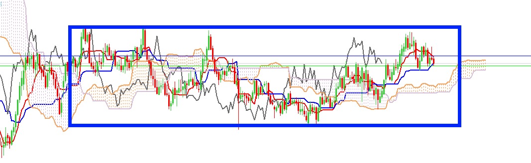Donc, si ce range H1 casse par le bas : VENTE! avec TP sur la kijun weekly.