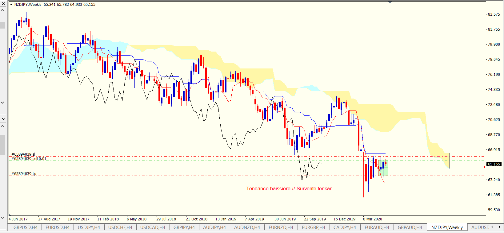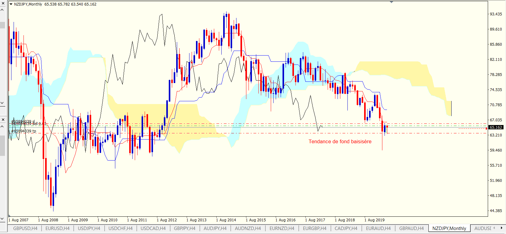Concernant ton trade NZDJPY, en regardant le mensuel sur ton graphique je ne dirais pas que la tendance de fond est baissière. je vois surtout une non tendance. A moins que tu veuilles parler de la bougie en cours
