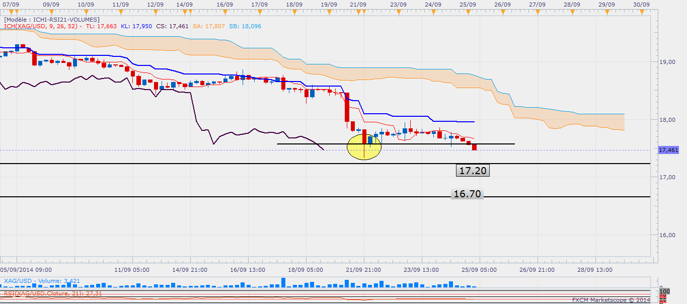 vente si cassure de la trend en cloture, stop 16.80 objectif est écrit sur le graphique (cliquez pour agrandir)