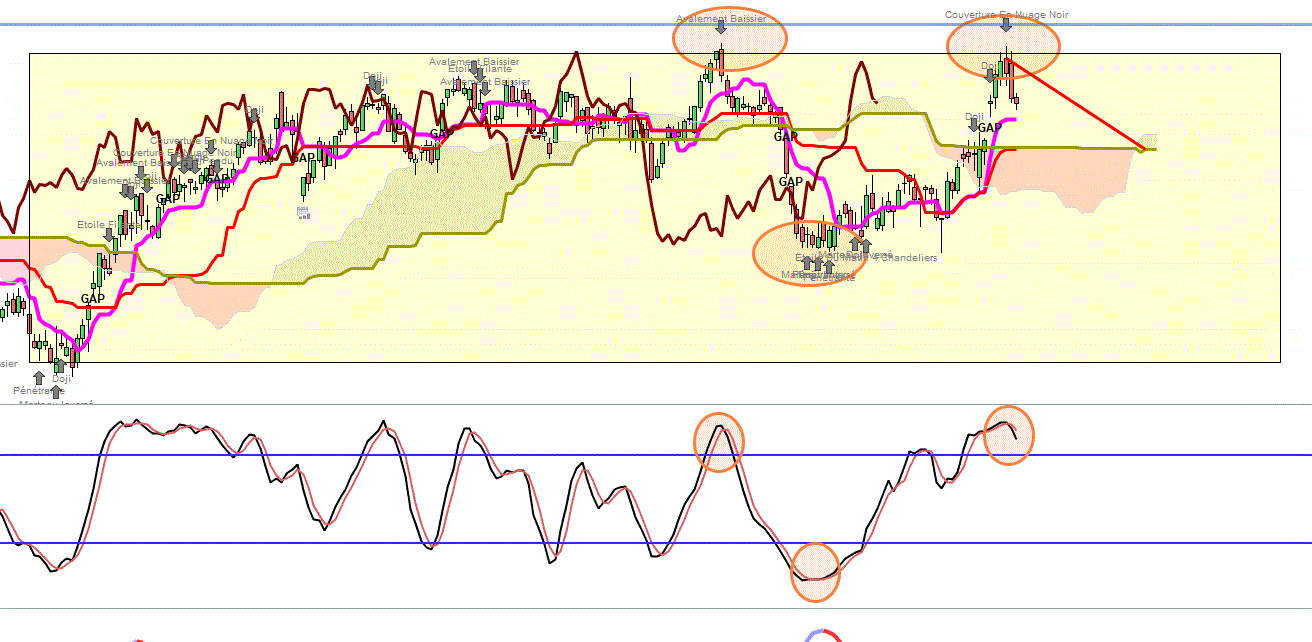 C’est par exemple avec ichimoku et cet indicateur que je me suis placé à la baisse sur Sanofi