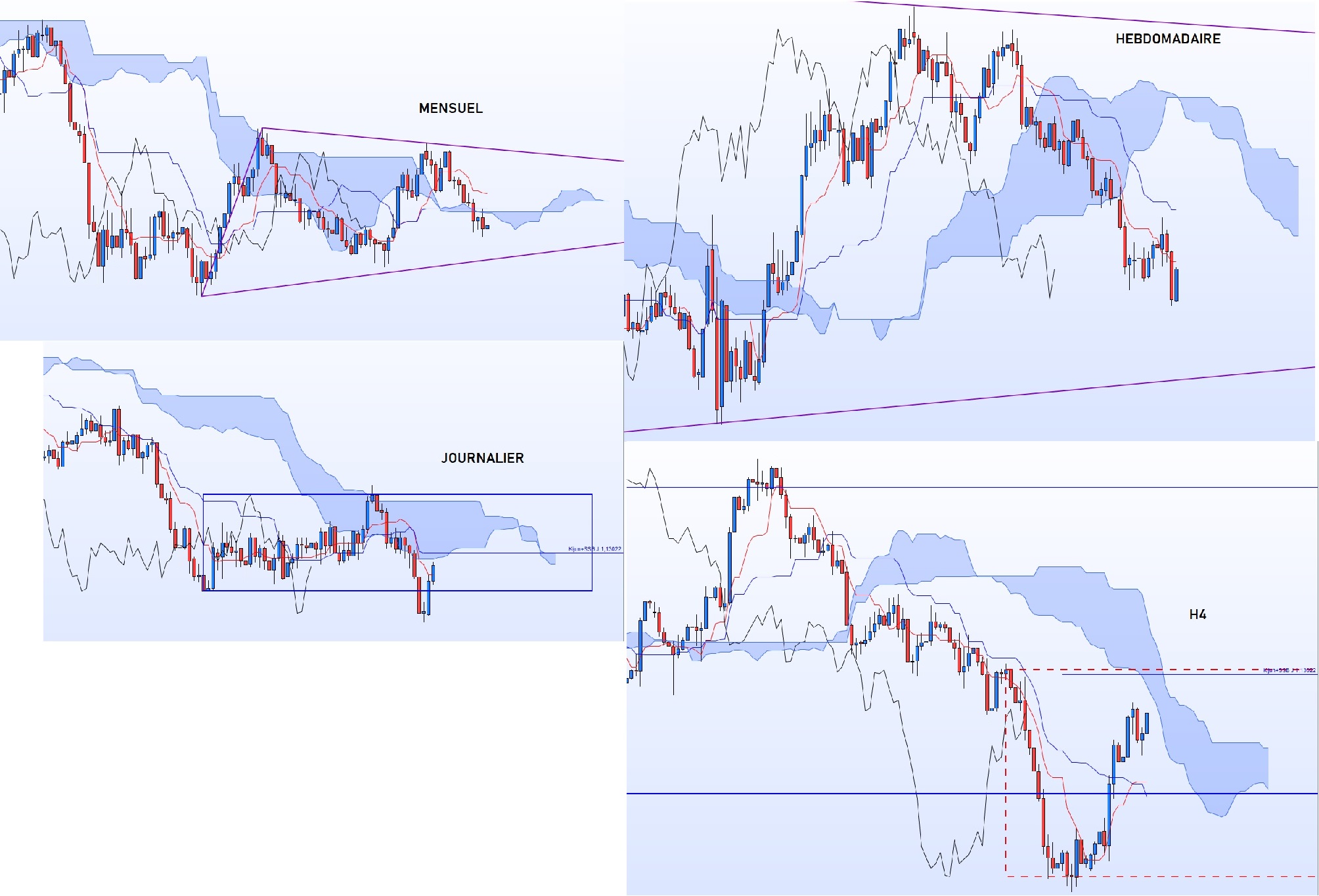 Bonjour, et bravo (pour le gain et pour l'analyse). Je valide totalement l'idée de baisse en swing sur cette paire avec retour sur la ZE/kijun mensuelle.