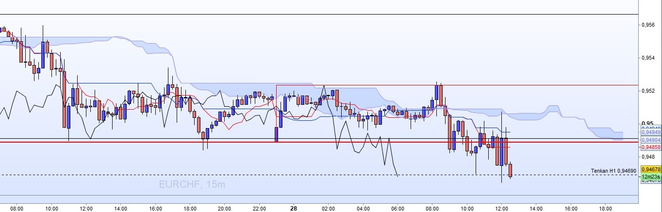 En résumé :Les prix préparent une cassure de résistance et sont revenus sur Tenkan M15/Kijun M5. Je cherche un bon point d'entrée pour anticiper la cassure de résistance, dans un territoire compris entre le "plus bas théorique" (en-dessous duquel le trade est mort) et la résistance. Histoire de soigner le ratio.
