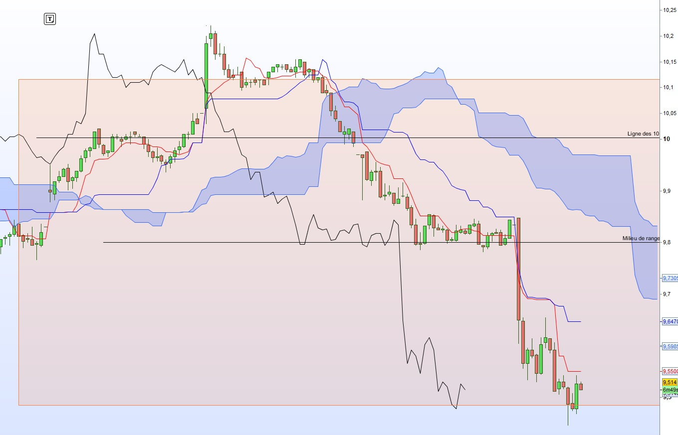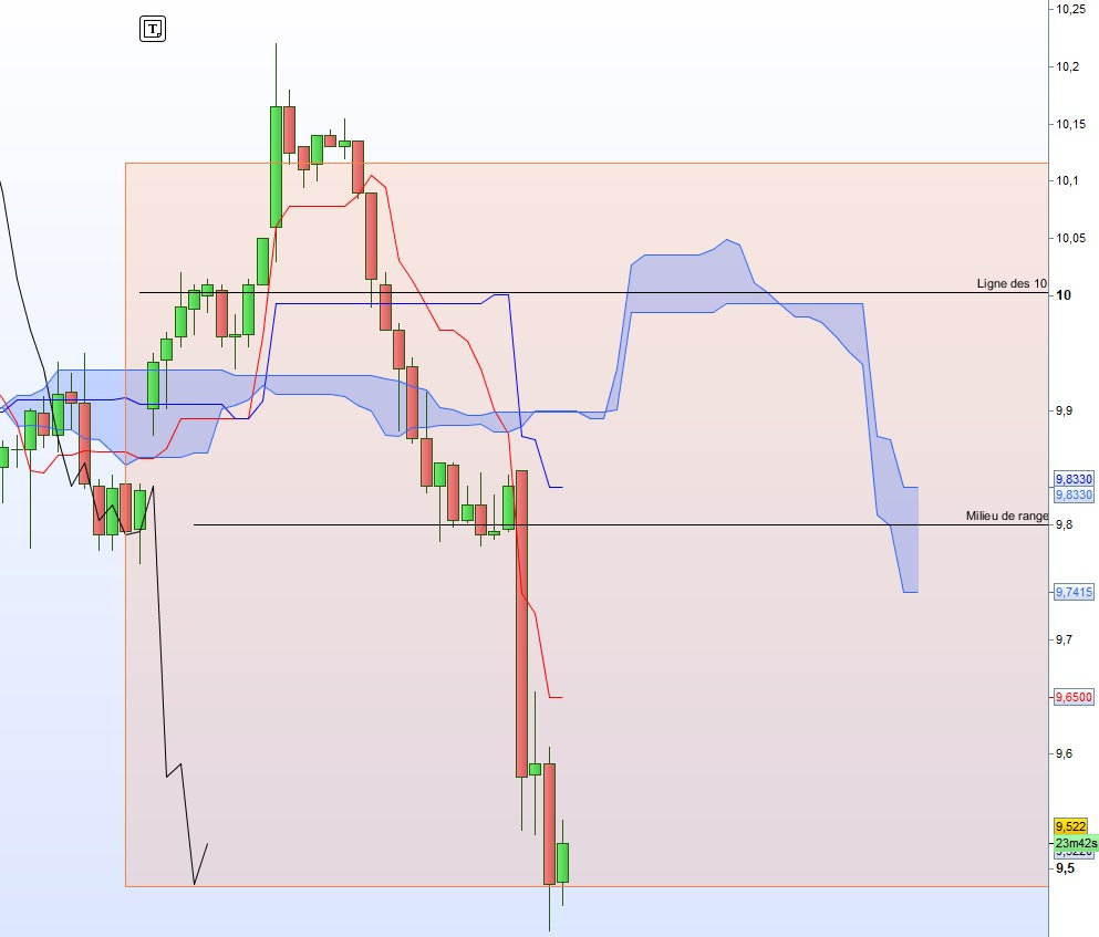 Objectif : milieu du range PUIS ligne des 10€ PUIS haut du range (j'avoue que je crois peu à cette dernière option vu la tendance baissière en journalier. Mais on verra).