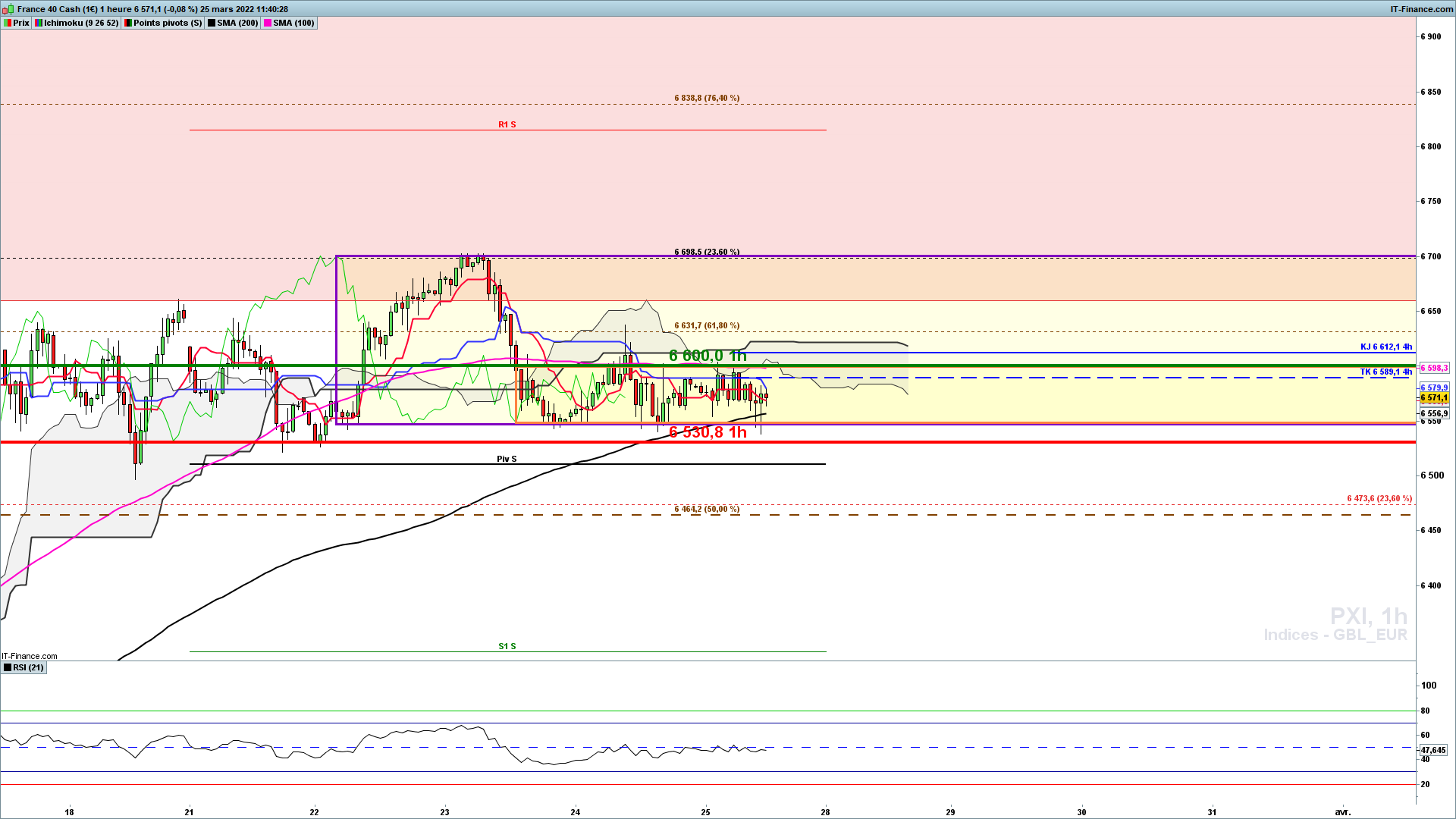 Premier alerte ssb hebdo (13681) et ensuite seuil support hebdo/mensuel (13302) voir la mm200 hebdo situé actuellement vers 13100. Invalidation moyen terme si clôture H4 au dessus de ce seuil hebdo. (14134)
