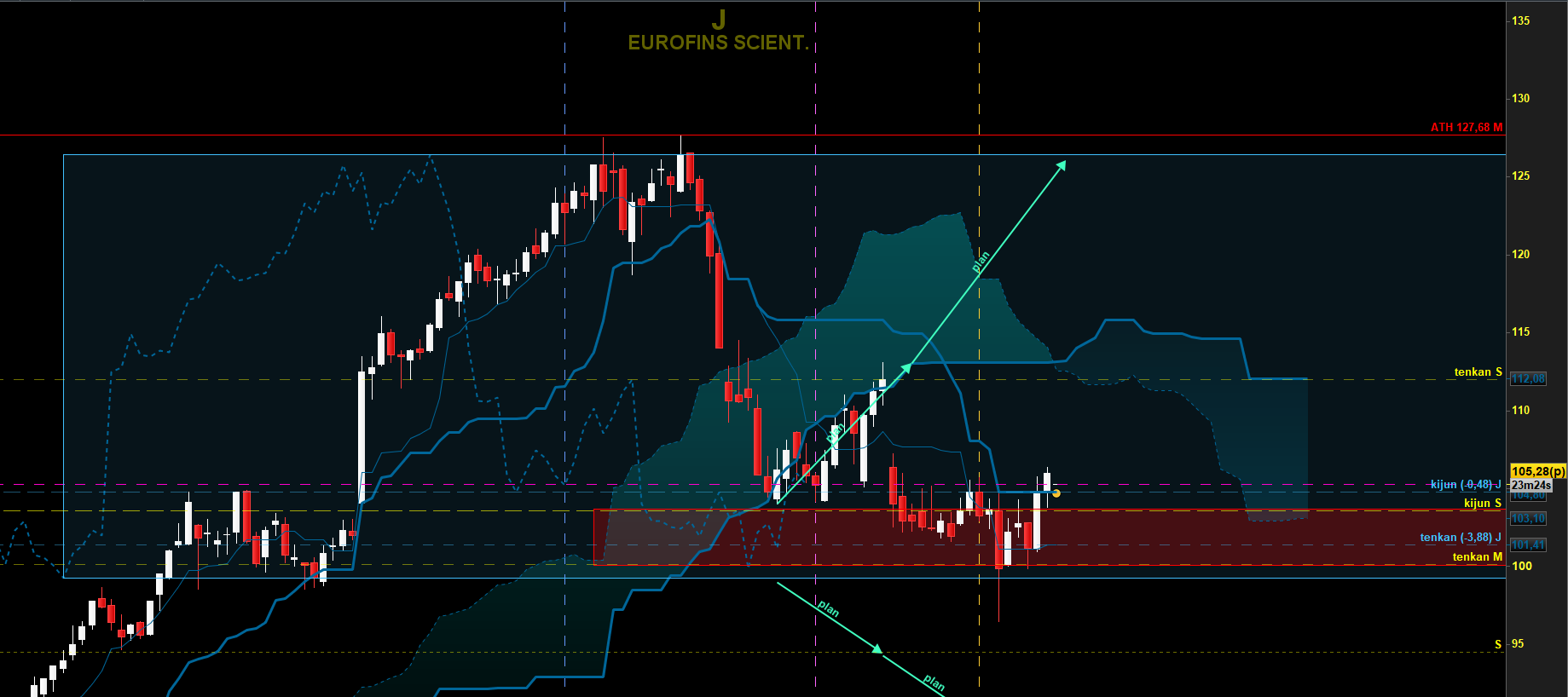 D'après mon analyse le niveau des 105E est un support/resistance tres fort