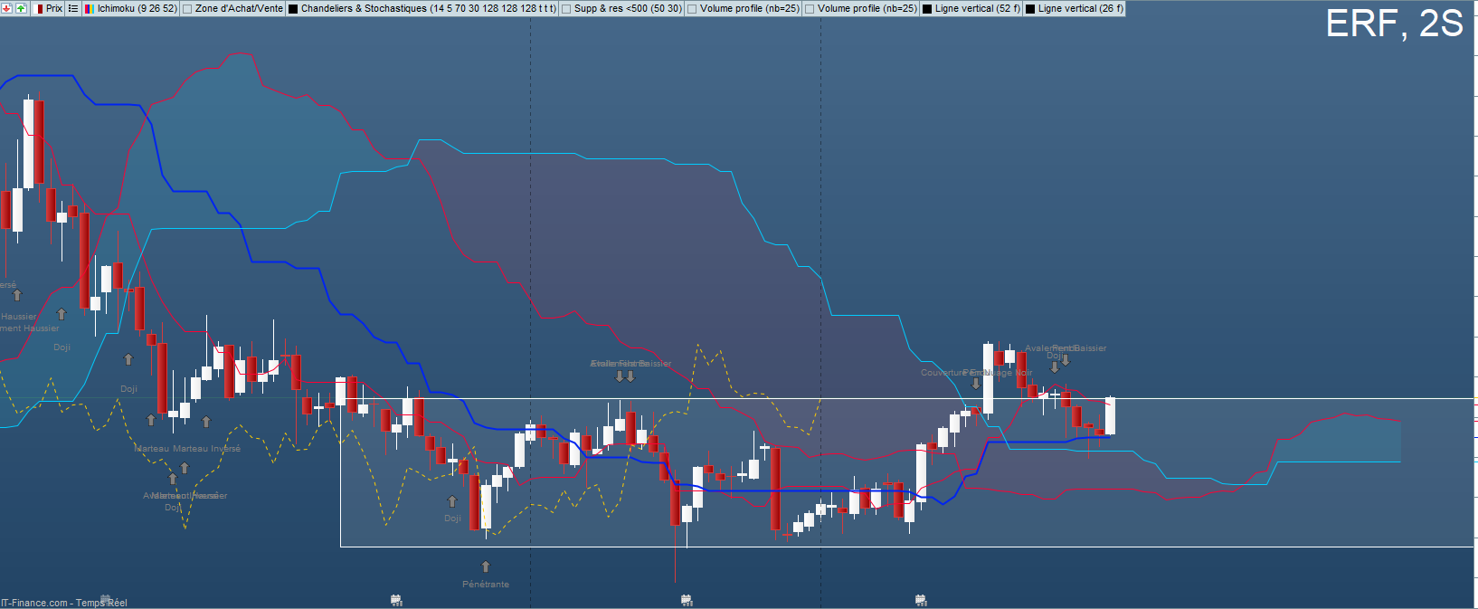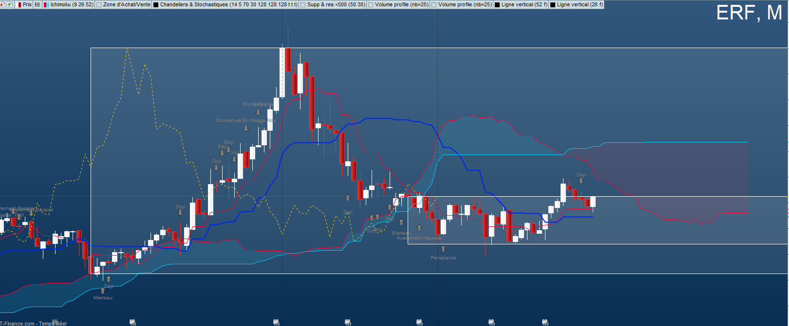 Bonjour à tous, si vous regardez mon analyse du 9 octobre sur cette file, vous constaterez qu'elle est toujours valide. en fin de semaine, les prix ont cassé la "zone rouge", donc kijun et tenkan hebdo en support désormais, mais aussi les Ks et Ts daily, le tout en bas d'un range daily. D'un point de vue technique, tant que ce range tient (et même la kijun hebdo en clôture): pas d'invalidation.