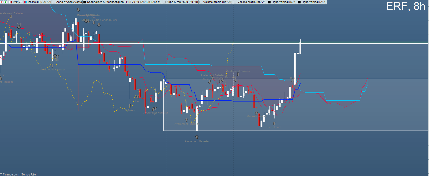 H8: Ca devient un peu tirer par les cheveux pour de l'investissement mais les bougies d'hésitation sur les Ksweekly et monthly on provoqué un range qui vient de se faire break.