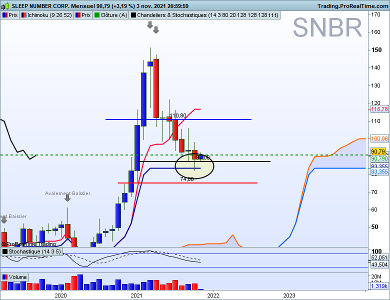 Si ça n'avait pas été le cas j'aurais mis un ordre d'achat à 87 TP 111 stop à 75 ( attention résultats)