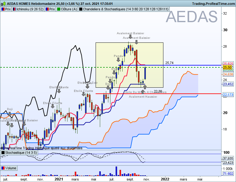 Achat au marché à 23,6 stop à 22,30 sous la borne basse du potentiel range tp à 25,75 zone équlibre