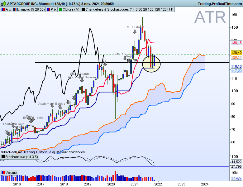 Bonjour Patrick ayant loupé la première opportunité sur Aptargroup, j'ai acheté le marteau vendredi 31/12 soir sur la kijun mensuelle pour un achat de long terme!