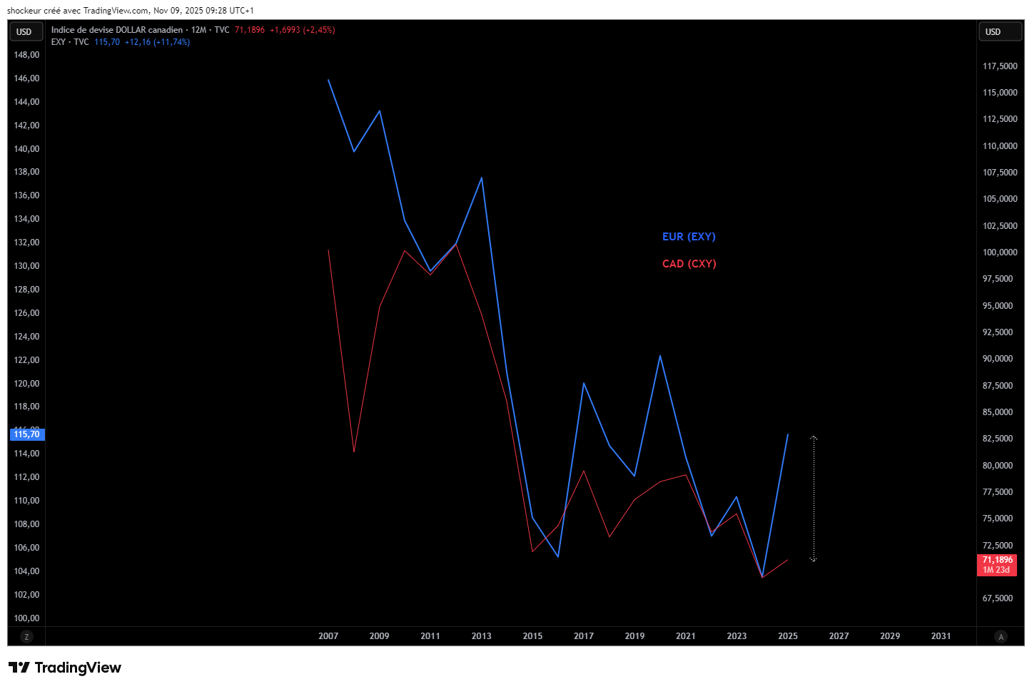 Peut être s'aider de du CXY / EXY (Annuel) :
