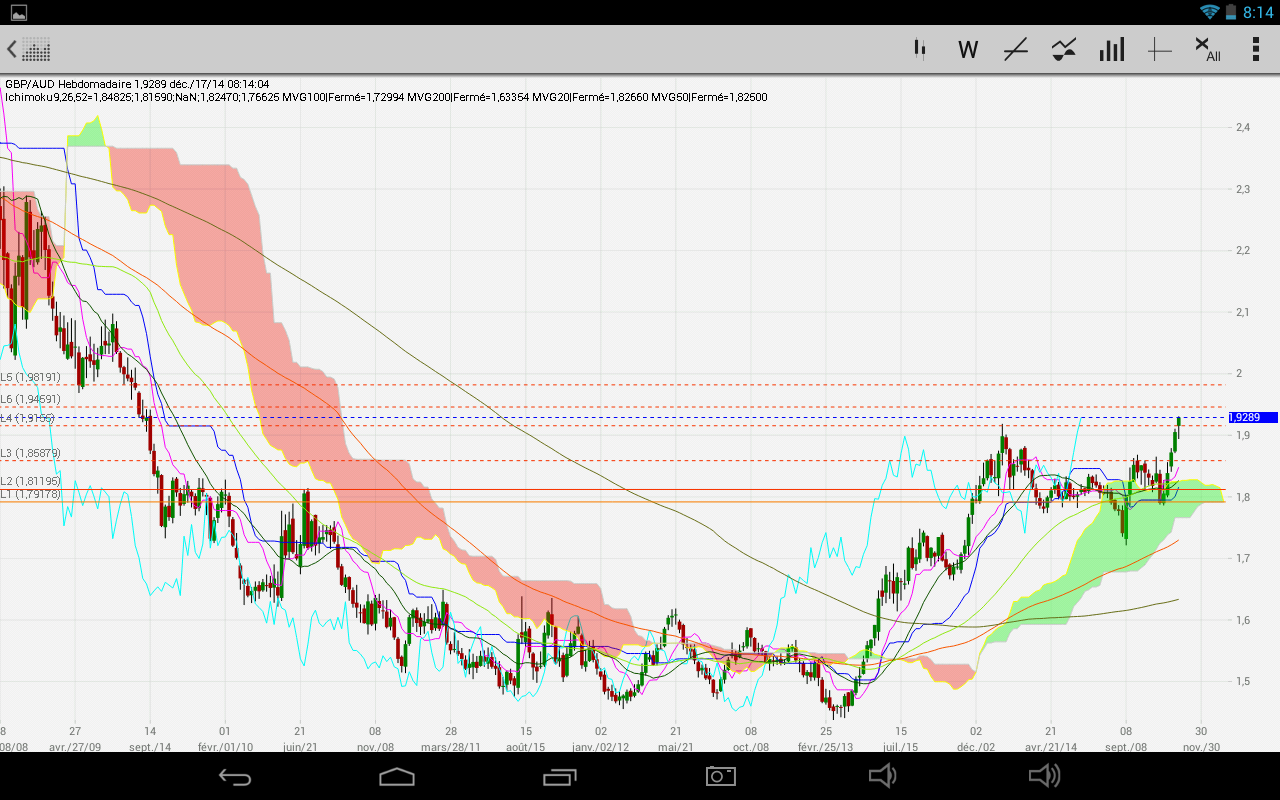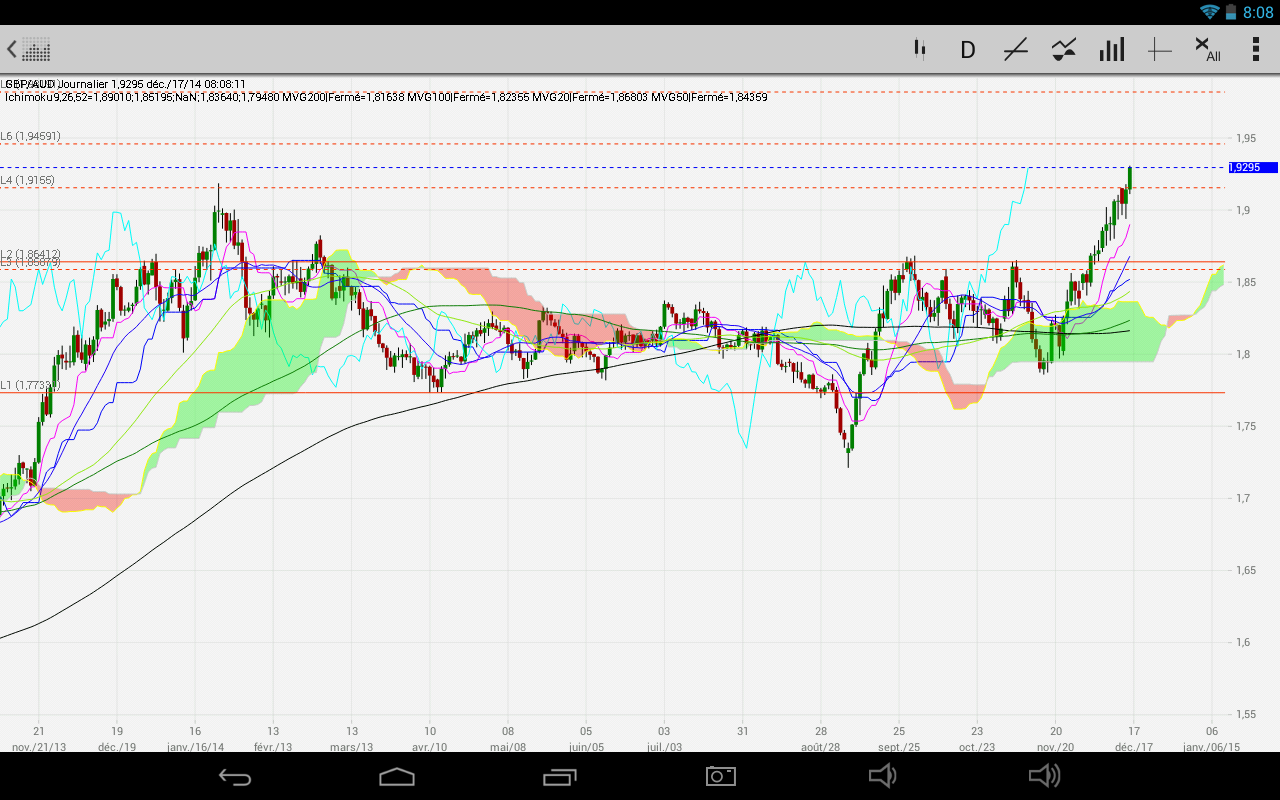 le 15/12/14 a 11h50 j'entre long GBPAUD stop 1.8958, (je dois m'absenter alors je n'ai pas le temps de détailler) Comme je le fais souvent, j'anticipe le rebond sur support (graph 5 min) à l'aide des lignes de chandeliers japonais de retournement. Voir analyse provisoire sur le dernier billet du blog http://www.ichimoku-kinko-hyo.info/blog/analyses/test-1.html, je viendrais faire le point dès mon retour, je dois partir vite