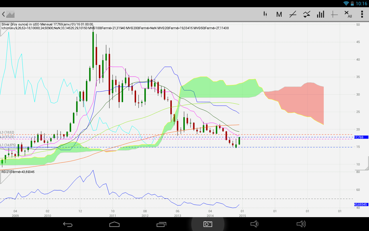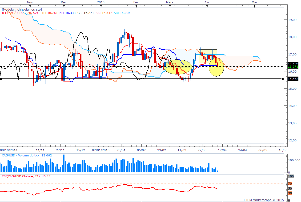 En daily, les prix sont sortis du nuage le 09/01 et chikou vient de s'arreter sur le bord du nuage et va forcement en sortir la semaine prochaine.